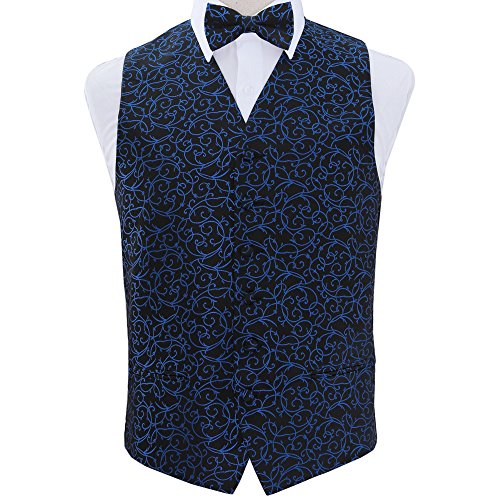 Best Seller! DQT New Swirl Jacquard Black and Blue Men's Waistcoat, Pre-Tied Bow Tie, Hanky & Cufflinks - 42" Review
