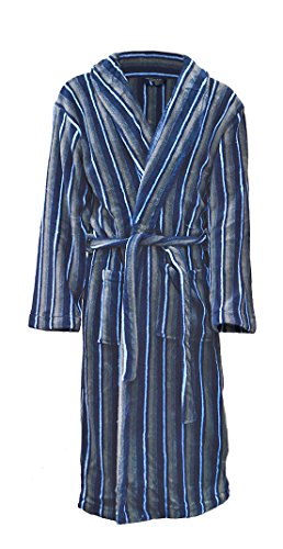 Mens Dressing Gowns offer Men's Warm Plush Fleece Dressing Gown - Navy, Grey & Blue Stripes. This awesome product currently limited units, you can buy it now for £32.99, You save -